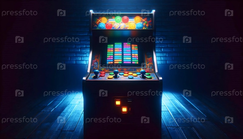 Винтажный аркадный автомат в темной комнате, Ai generated image