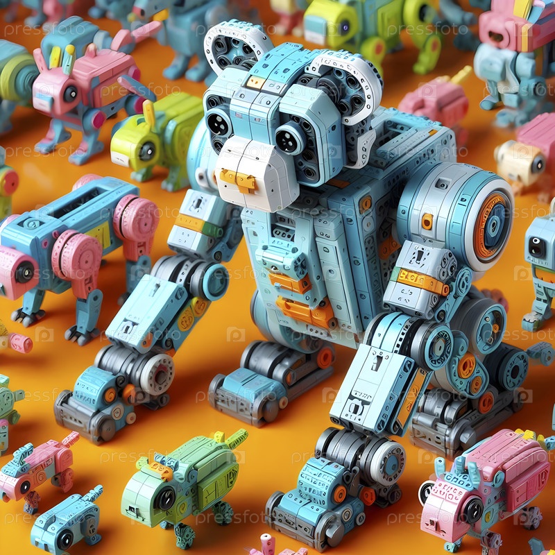 Модульные блоки роботов, которые самостоятельно собираются в различных животных, Ai created image