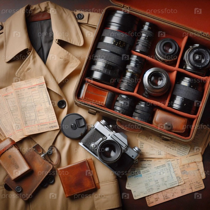 Набор фотографов ретро-путешествий, Ai generated image