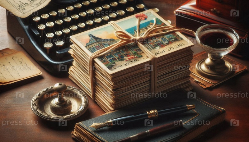 Куча гостиничных открыток начала века, связанных лентой Ai generated image