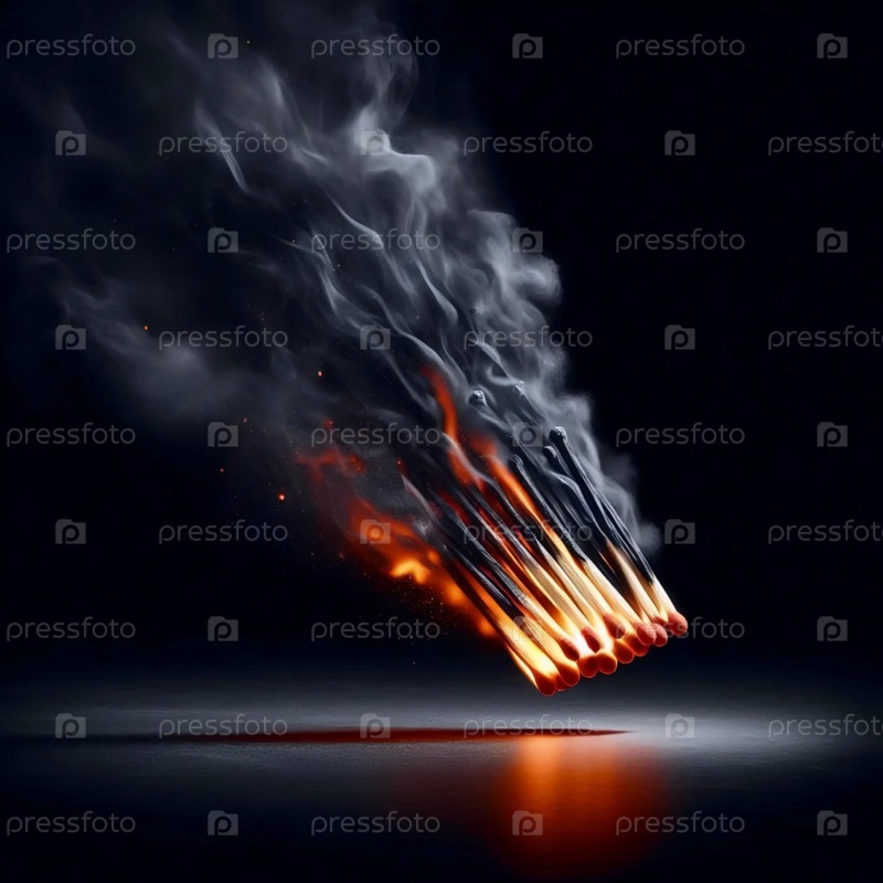 Горящая спичка на черной поверхности, Ai generated image