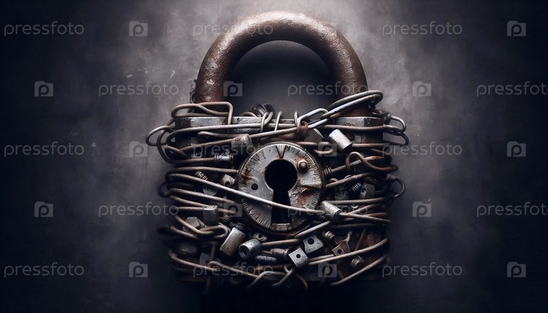 Ржавый замок на цепочке, Ai generated image