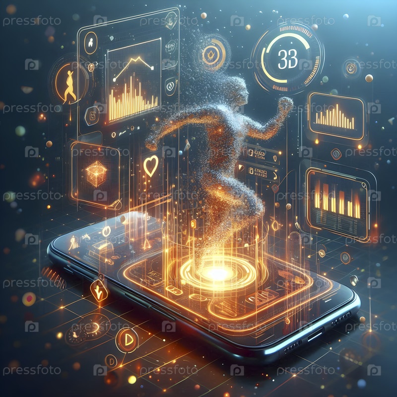 Плавучий интерфейс 3D-рендера - фитнес-приложение со статистикой тренировок, Ai created image