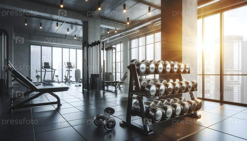 Профессиональный интерьер тренажерного зала с оборудованием для тренировок, Ai created image