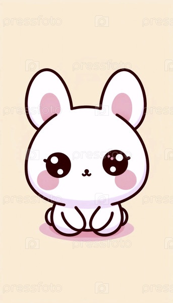 Простой кавайский персонаж краснеющего кролика, Ai generated image