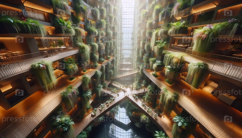 Стеклянный атриум с висящими садами, Ai generated image