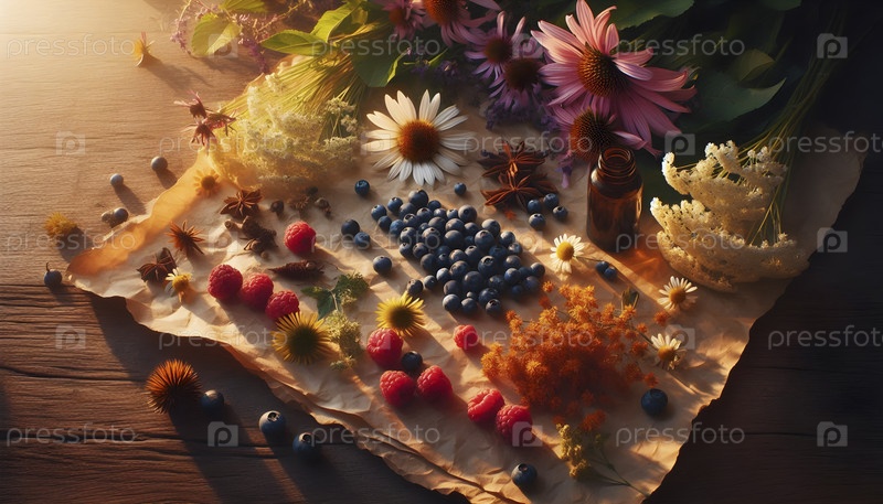 Свежесобранная эхинацея, ромашка и бородавка Ai created image