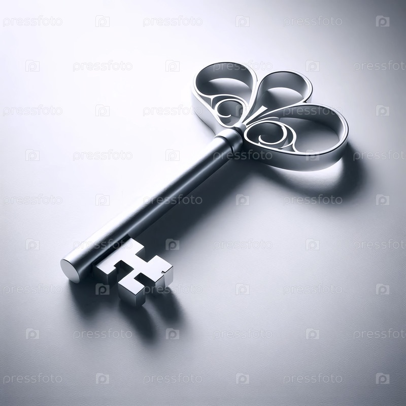 Один сложный ключ на белом фоне, его запутанные разрезы и зубы с абсолютной ясностью, Ай создал изображение