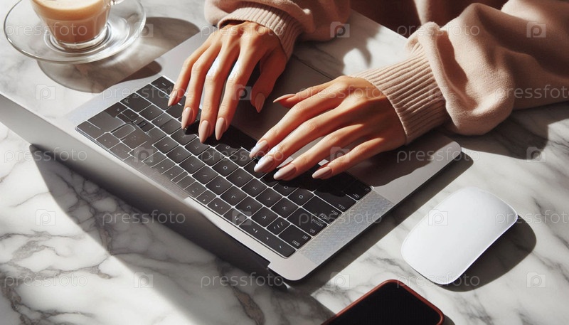 Руки, печатающие на клавиатуре в творческой атмосфере рабочего пространства, Ai generated image