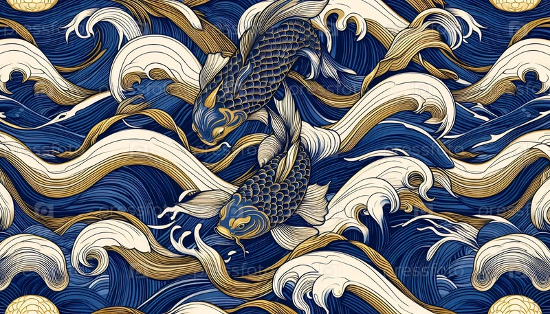 Японский дизайн обоев с повторяющимися узорами, Ai generated image