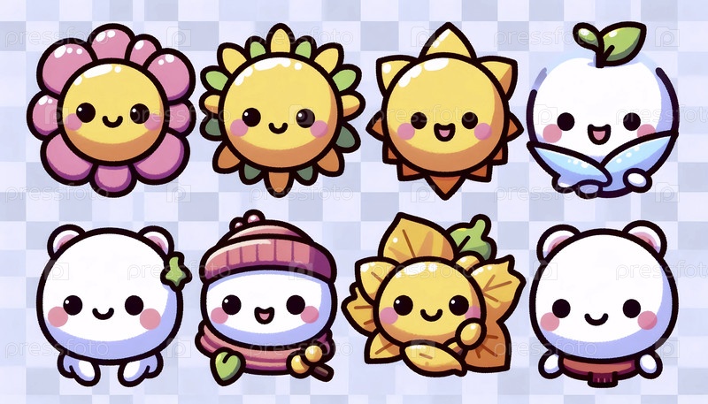 Набор клипартов с сезонными иконами кавайи, Ai generated image