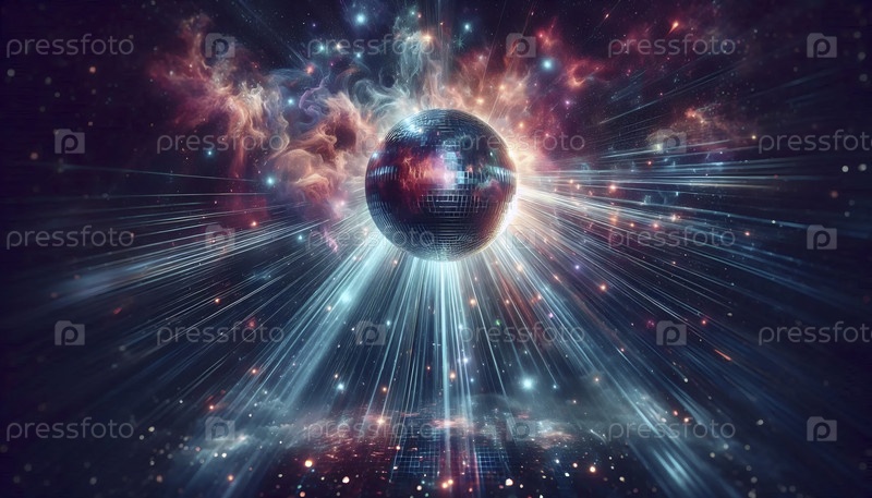 Сцена в ночном клубе с одним гигантским дискотечным шаром, отражающим красочные лазерные лучи во всех направлениях, Ai generated image