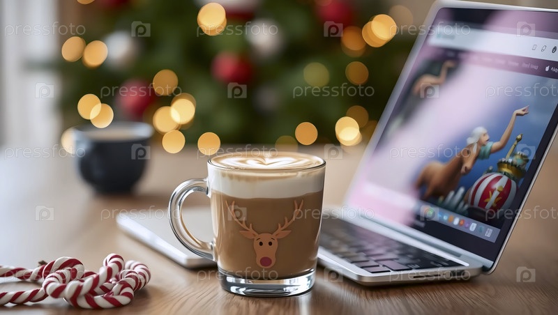 Искусство, ноутбук с чашкой кофе, Ai generated image Lat