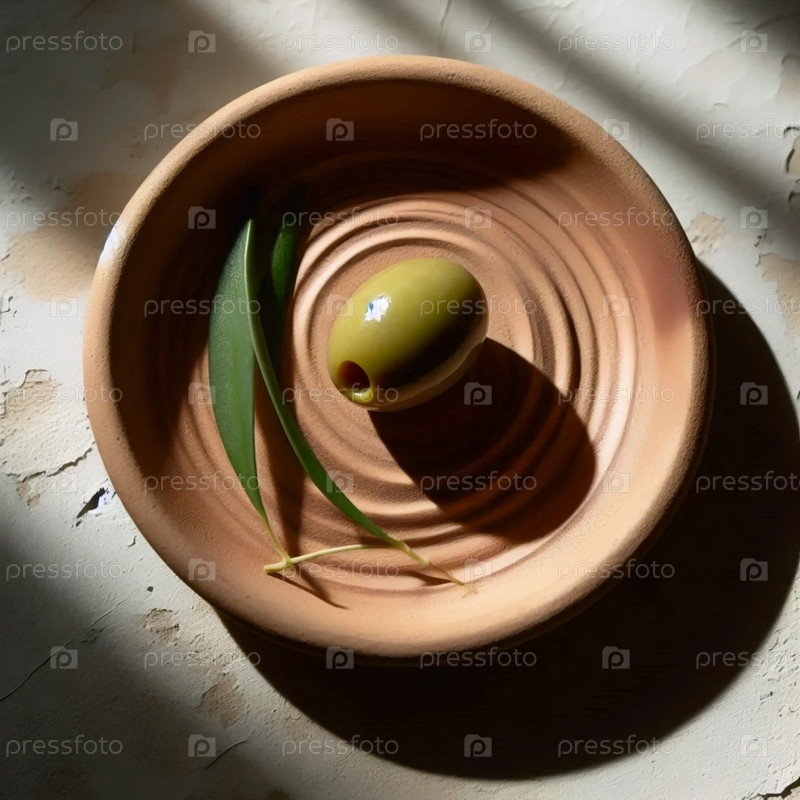 Нерегулярная глиняная плита с оливкой, Ai generated image