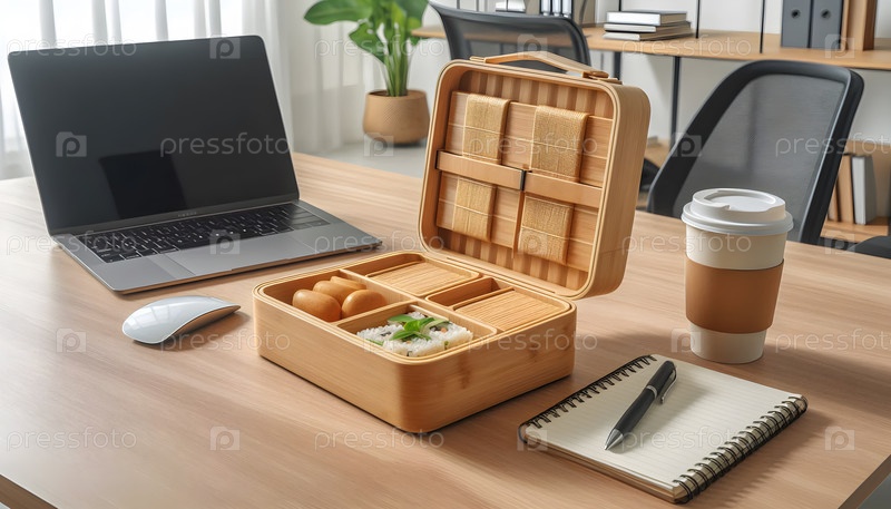Бамбуковая волокна обеденный ящик, Ai-генерированное изображение