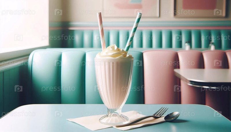 Винтажный молочный коктейль, подаваемый в классическом столовом стакане 1950-х годов Ai generated image