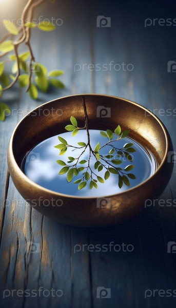 Отражение дерева в миске с неподвижной водой, Ai generated image