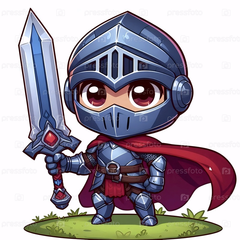 Chibi версия рыцаря фантастической игры, Ai generated image