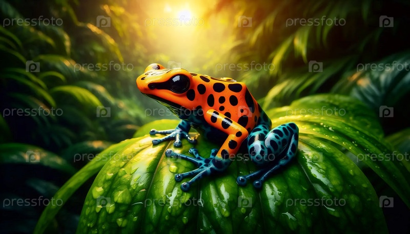 A vibrant poison dart frog, Ai generated image Вибрирующая ядовитая стрелка лягушки, созданная изображением