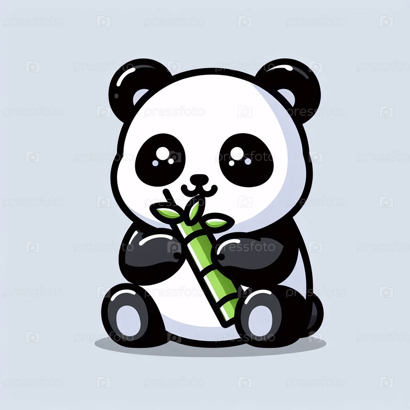 Простой кавайский персонаж панды с бамбуком, Ai generated image