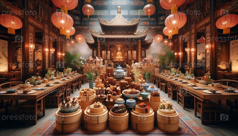 Китайская буддийская веганская кухня, искусственный интеллект создал изображение