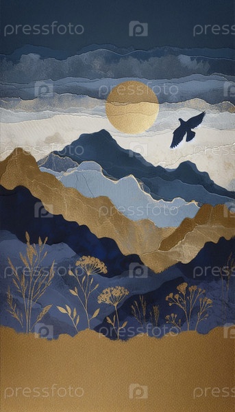 Дикая вера в художественную печать гор и летающего голубя, Ай создал изображение