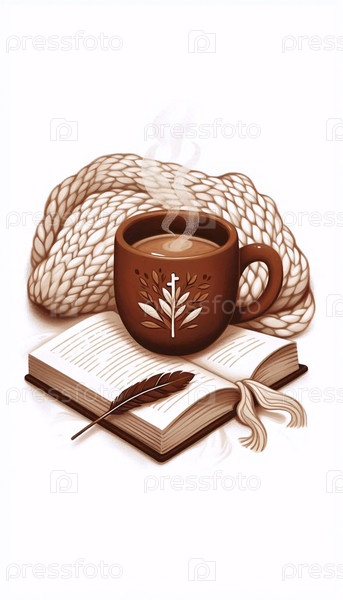 Уютная иллюстрация бохо из кипящей чаши на вязанном одеяле, Ai generated image