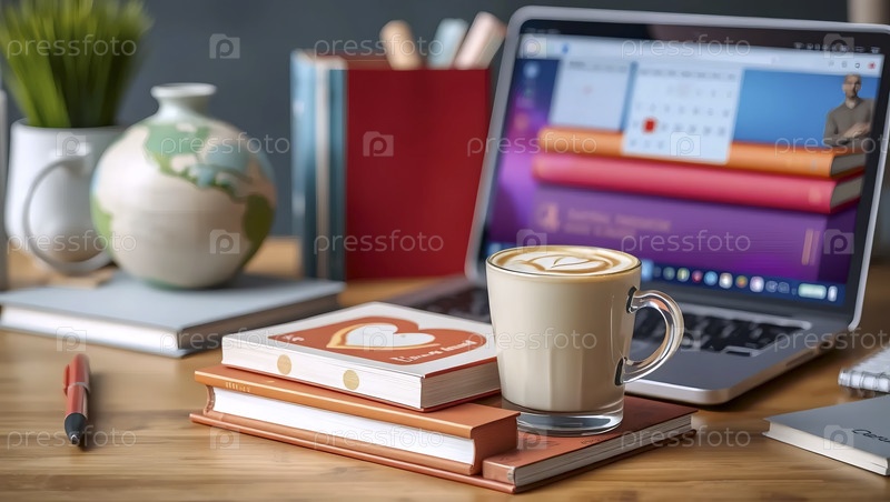 Искусство, ноутбук с чашкой кофе, Ai generated image Lat