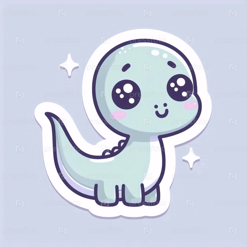 Милый стикер кавайи дружелюбного динозавра, Ai generated image