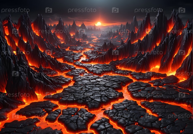 Абстрактная местность со светящимися лавовыми трещинами, изображение создано с помощью Ai