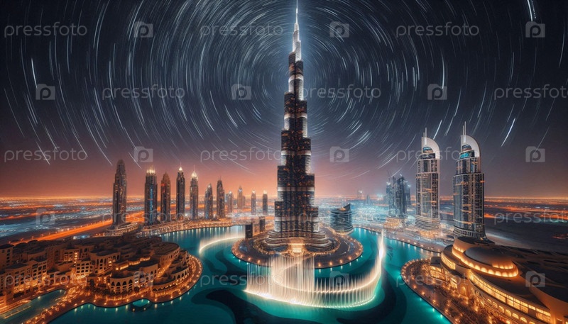 Мировое шоу Бурдж-Халифа с фонтанами, Ai generated image