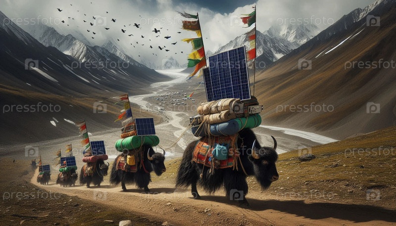 Тибетские солнечные караваны Як, созданное искусственным интеллектом изображение