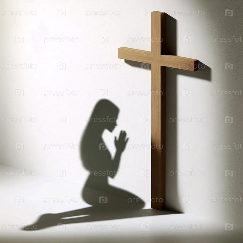 Тень человека в молитве, брошенная на стену с крестом, Ай создала изображение