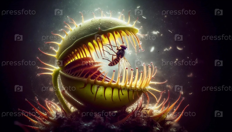 Венера мухоловка ловит добычу, Ai generated image A