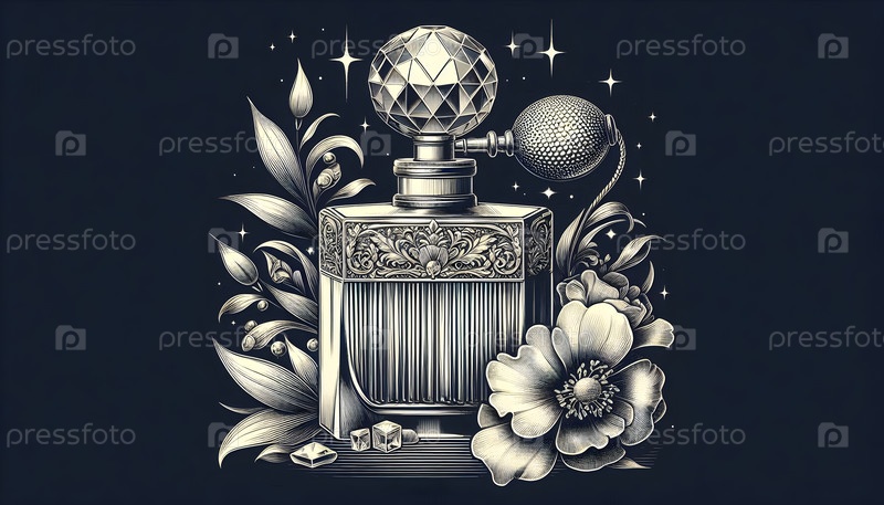 Бутылка парфюмерии с кристаллической пробкой, изображение создано AI
