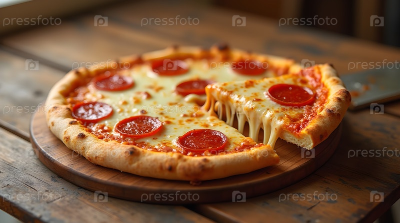 Пластик пиццы с эластичным сыром, изображение создано с помощью AI