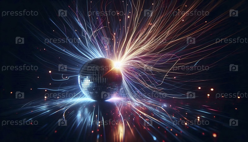 Сцена в ночном клубе с одним гигантским дискотечным шаром, отражающим красочные лазерные лучи во всех направлениях, Ai generated image