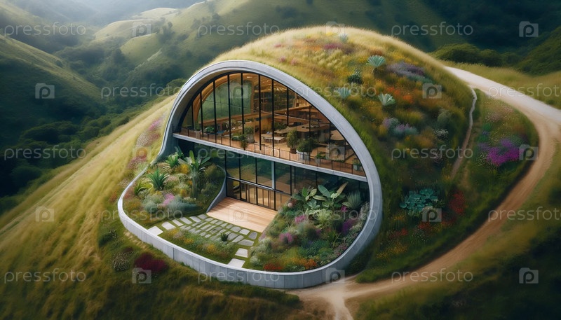 Пещерный дом с живой крышей, Ai generated image