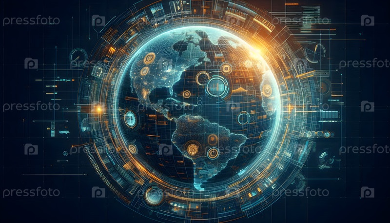 Digital wireframe globe, изображение создано с помощью Ai A