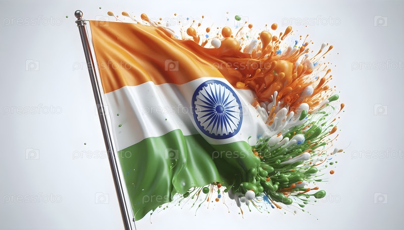 Индийский флаг, реалистичный эффект движения, Ai created image