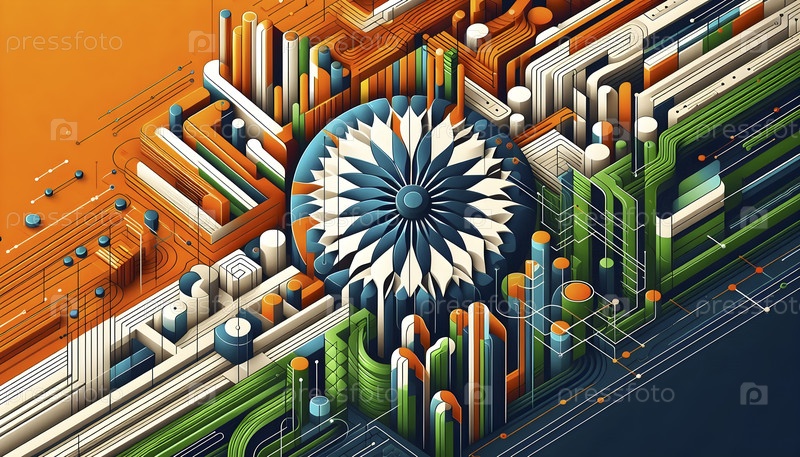 Индийский флаг, реалистичный эффект движения, Ai created image