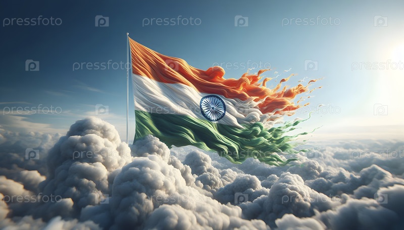 Индийский флаг, реалистичный эффект движения, Ai created image