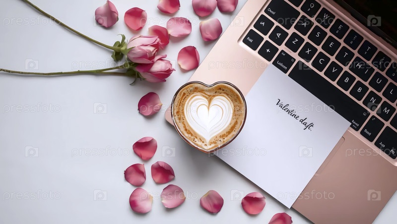 Искусство, ноутбук с чашкой кофе, Ai generated image Lat