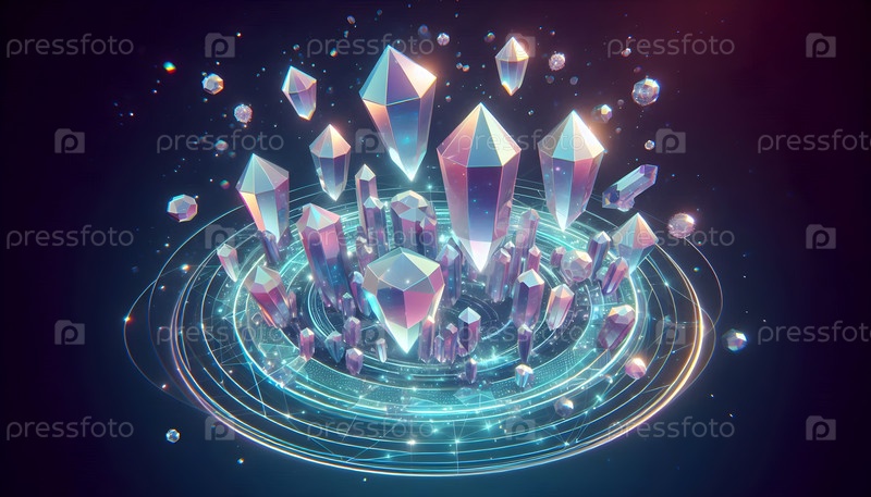Плавучие кристаллы с преломлением света, изображение создано с использованием Ai