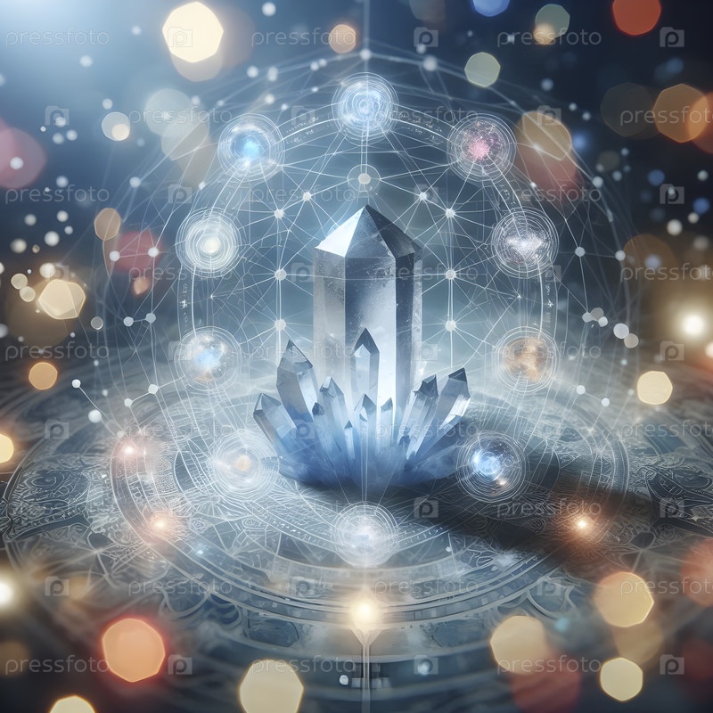 Кварцевая кристаллическая сетка, наложенная на точки чакры, Ai created image