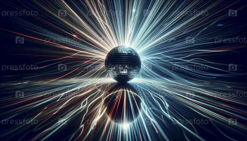 Сцена в ночном клубе с одним гигантским дискотечным шаром, отражающим красочные лазерные лучи во всех направлениях, Ai generated image