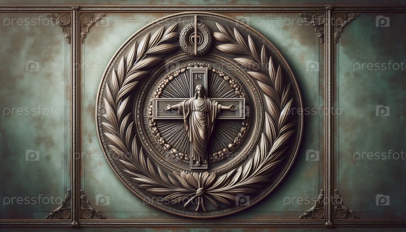 Монограмма Chi Rho в короне из диких цветов, серого и золотого цвета, Ai generated image
