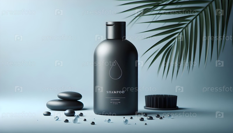 Бутылка шампуня, капли воды, image created using Ai
