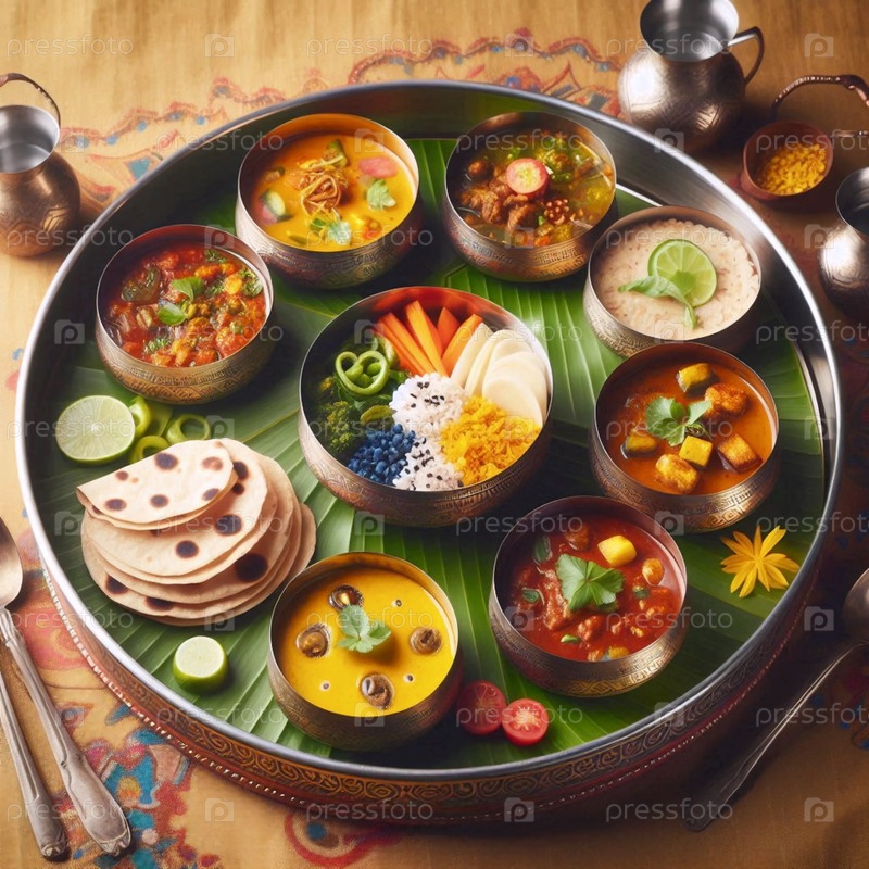 The Indian Thali Plant-Based Tradition, AI generated image Искусственный интеллект создал изображение