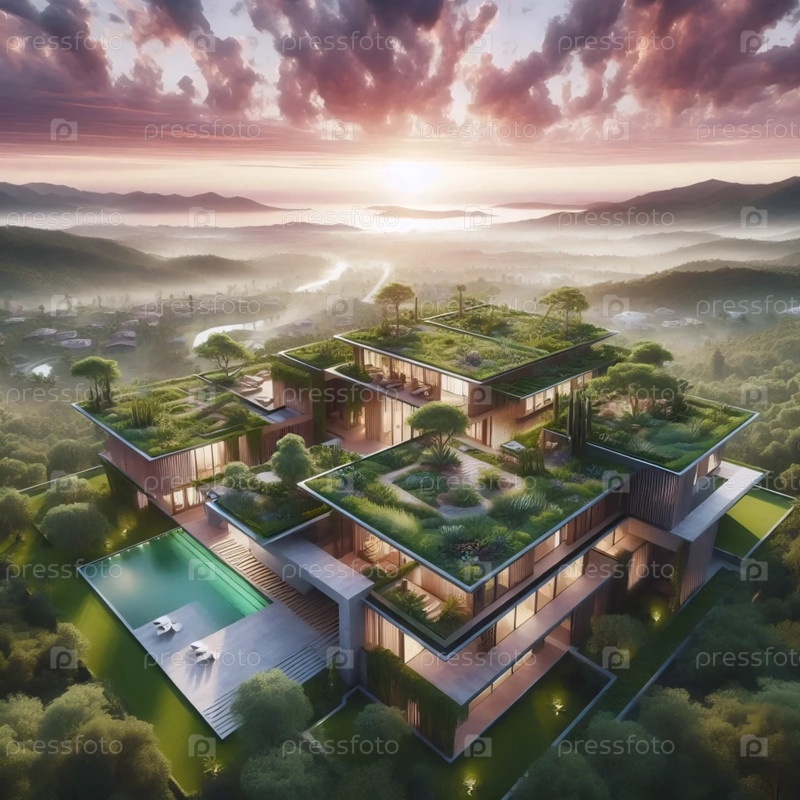 Эко-вилла с зеленой крышей, Ai generated image